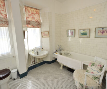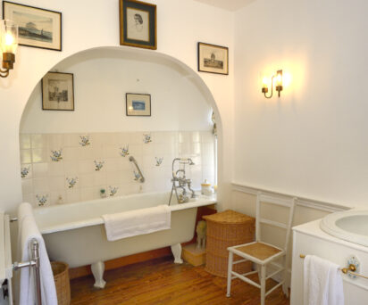 Dedicated bathroom accessed via the corridor with roll top bath and handheld shower over bath.
