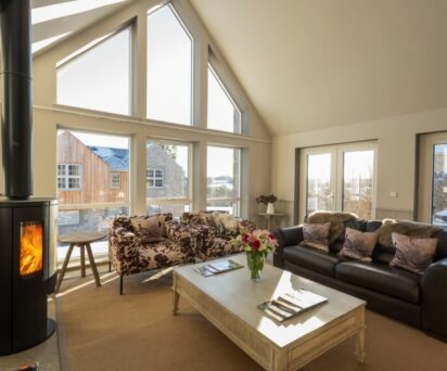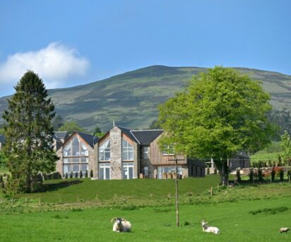 Nestled into a prominent location in the southern fringes of the Scottish Highlands, revel in the company of others at Milton Farm, a unique luxury steading complex located in rural Perthshire, providing high quality accommodation for up to 28 guests. The former manse and three stone cottages, all sensitively converted, sit alongside a new farmhouse and the new separate entertaining space “The Dining Barn” which can seat 60 comfortably with bespoke oak panelling and a huge stone fireplace and a fully fitted commercial kitchen. Perfect for wellness & corporate retreats, celebration events and large family gatherings.