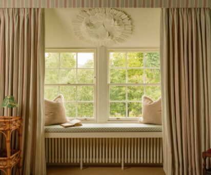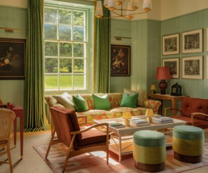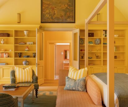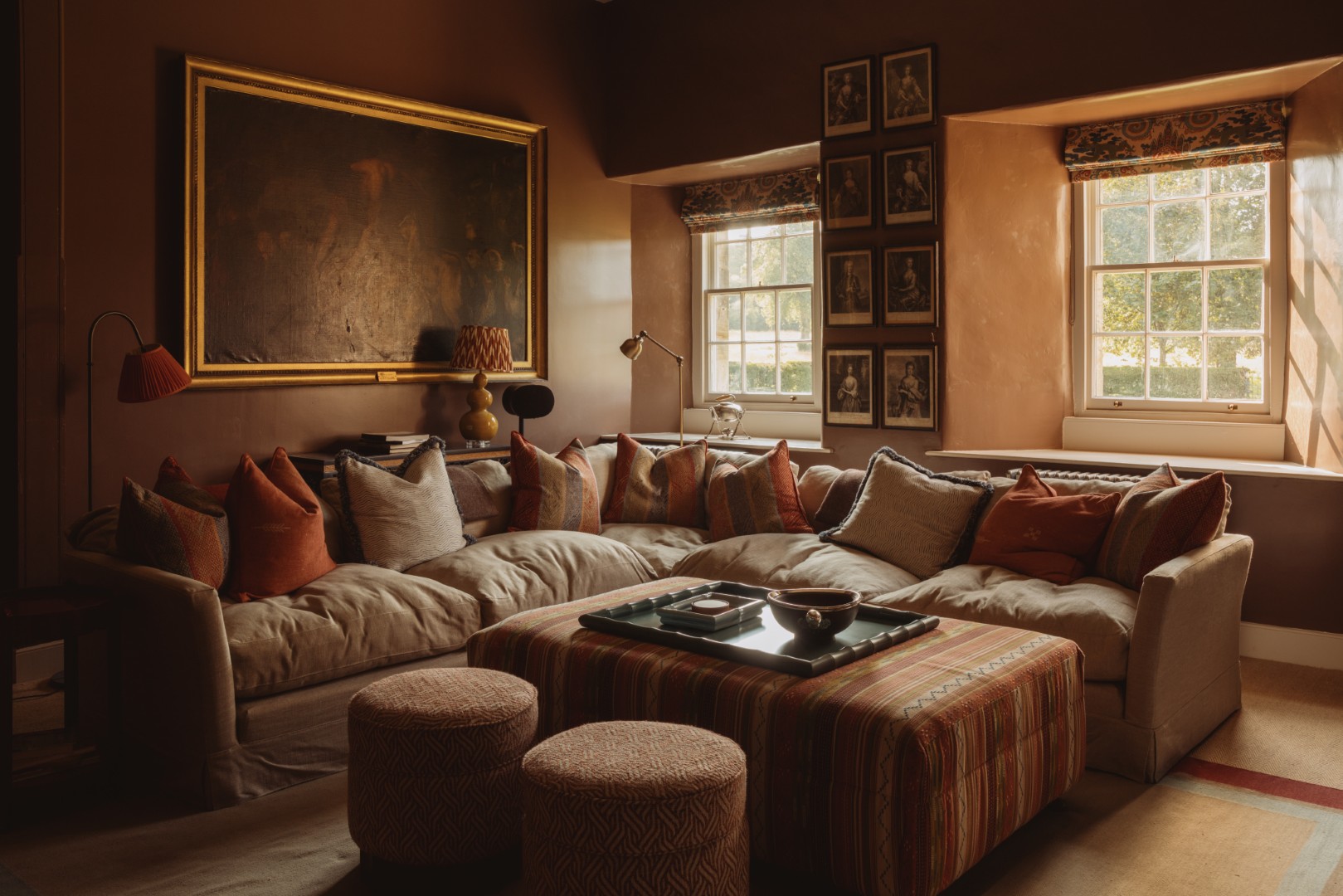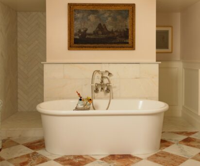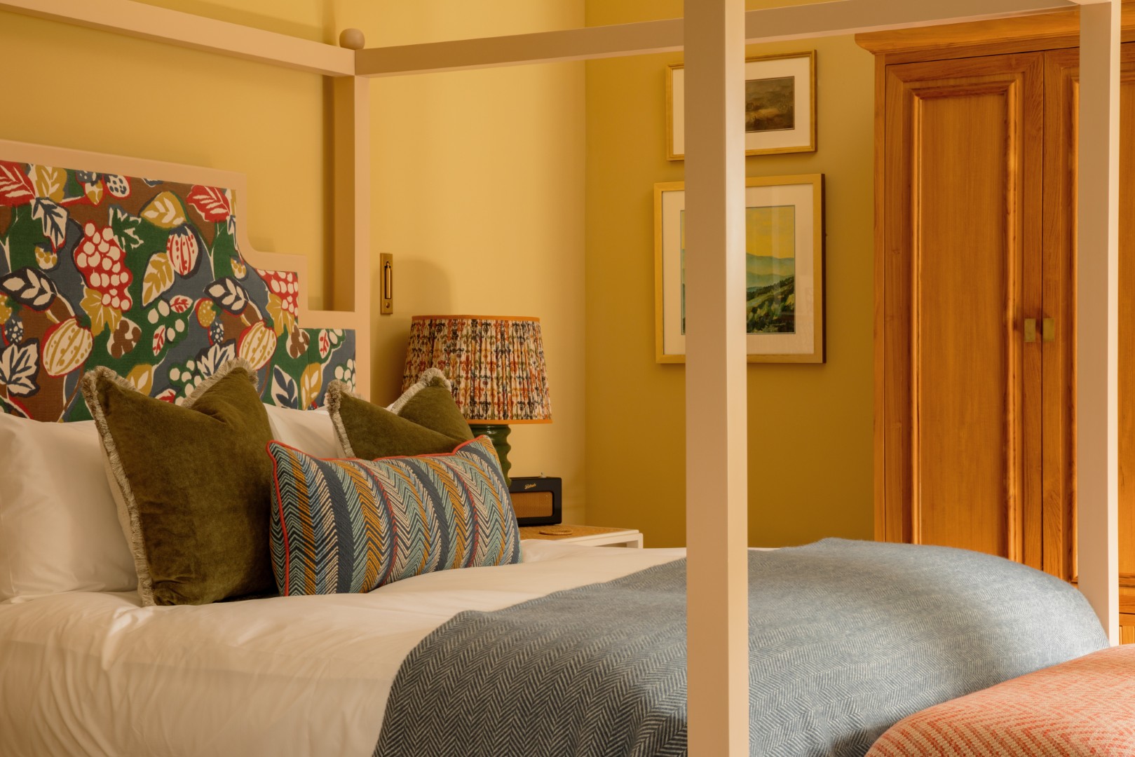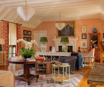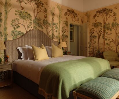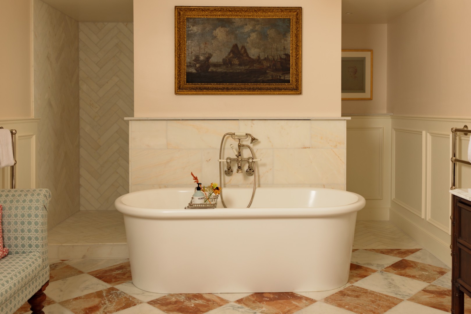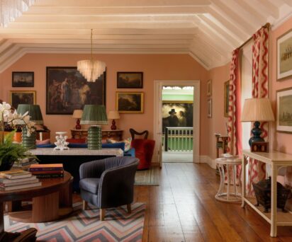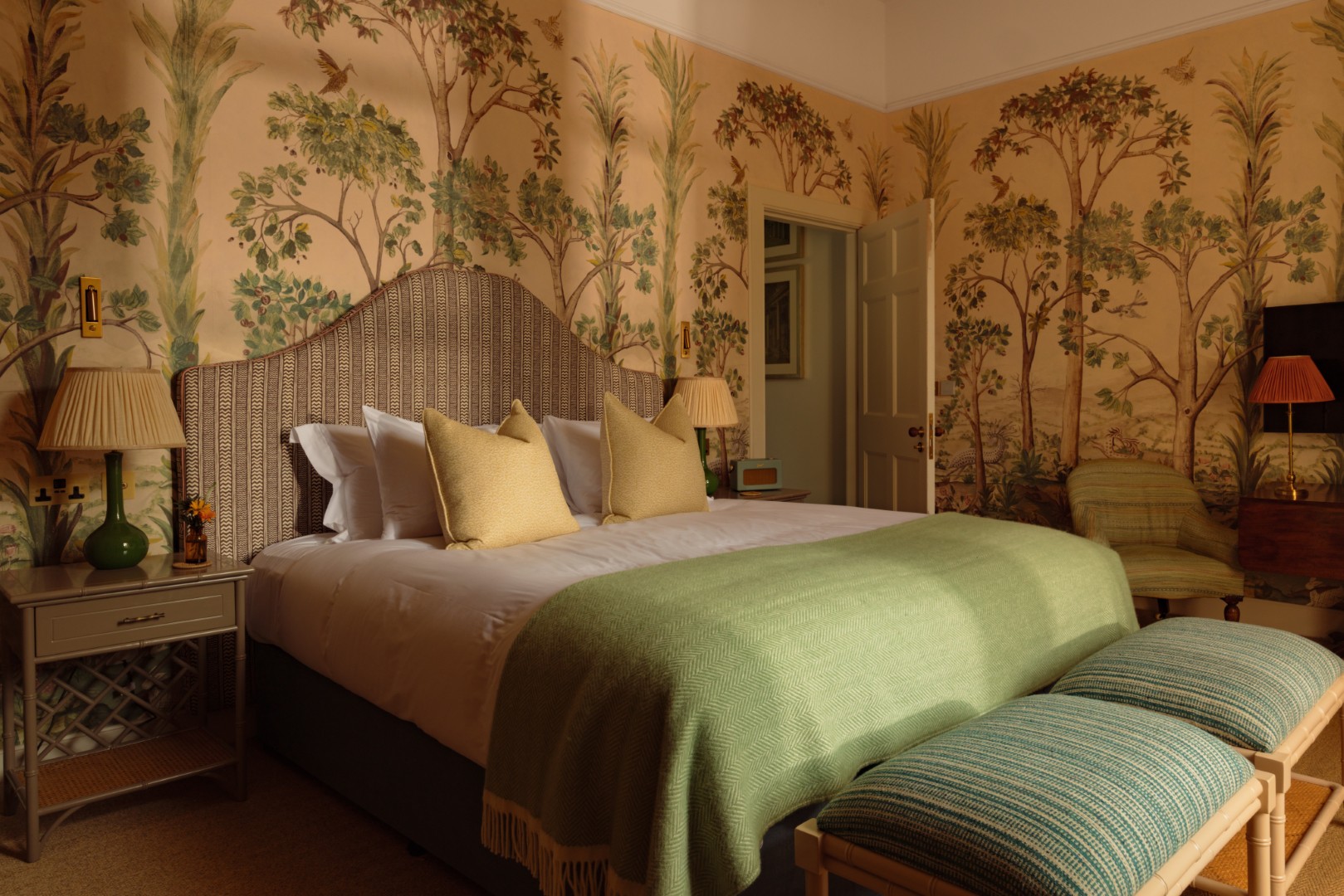 The eclectic vibe continues outside in the Italian courtyard, a tranquil sun trap where soft evening light and the gentle sound of the fountain create a sense of calm, while the adjacent Rose Garden provides a stunning croquet lawn and drinks terrace.