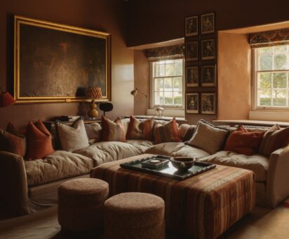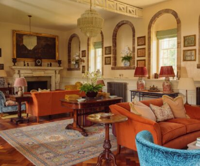 Eclectic, quirky and full of authentic character, Penicuik House is overflowing with art and furniture collected over centuries of the family’s grand tours. Featuring two grand reception rooms and a formal dining room, each accommodating up to 48 people, along with a large wood-panelled bar with an open roaring fire, a light-filled drawing room and a sumptuous cinema room with enormous sofas.