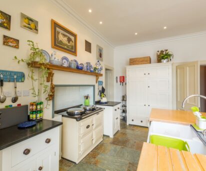 Well equipped kitchen with direct access to the patio, includes 2 dishwashers, 2 electric ovens, 2 freezers and 2 fridges together with an electric Aga and Nepresso coffee machine.