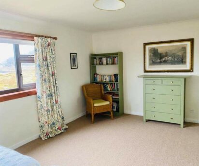 The modest wooden exterior of the house belies the warm comfort inside where the open plan areas provide spectacular landscape views, as well as cosy wood fires and extremely comfortable furnishings. There is an open plan living and dining room with a piano and open fire, a separate, spacious sitting room with views over the bay and a good selection of books, a fully equipped kitchen, separate utility room and a drying room for boots and wet clothes (and dog towels!).