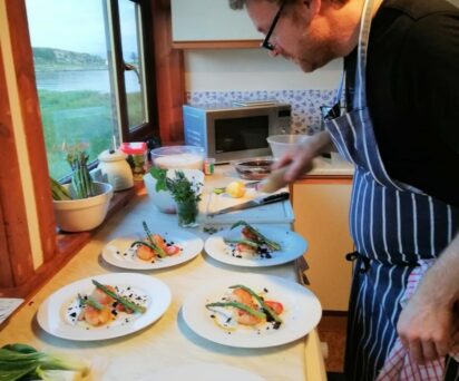 Ant, the estate chef, whenever possible, uses locally sourced ingredients such as scallops, lobsters and prawns fished from the waters around the Island.