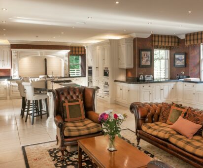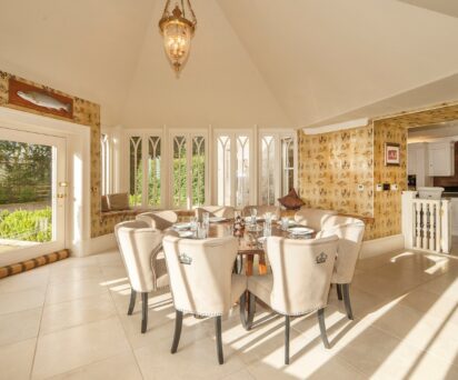 Indoors offers a multitude of entertaining spaces. The dining room is perfect for a celebration dinner, and then afterwards enjoy a game snooker, or relax in the drawing room.