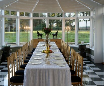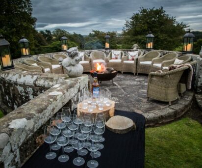 For larger events/weddings 100 guests can be seated for dining and dancing in the Wedding Room, and the conservatory, which can hold 60 guests. Or the Tartan Courtyard has a capacity of 90 guests.