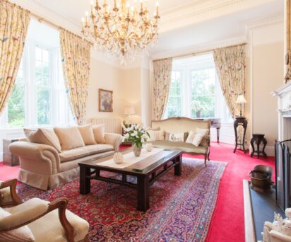 There are ten beautifully appointed bedrooms with views of the gardens and across the Angus glens. Sleeping up to twenty guests, the house is an elegant mix of traditional and modern décor whilst remaining close to its Scottish roots.