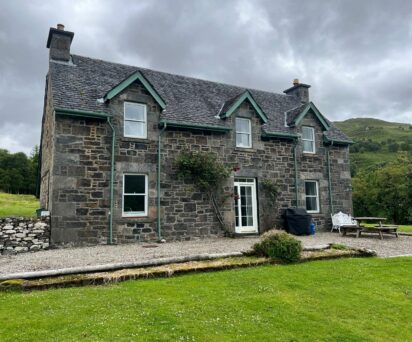 Overlooking the stunning waters of Loch Teacuis on the Morvern Peninsula, the rental comprises a spacious four/five bedroom farmhouse along with a nearby three bedroom cottage, both enjoying superb views over the sheltered sea loch. Loch Teacuis provides boating access, with two to three moorings included.